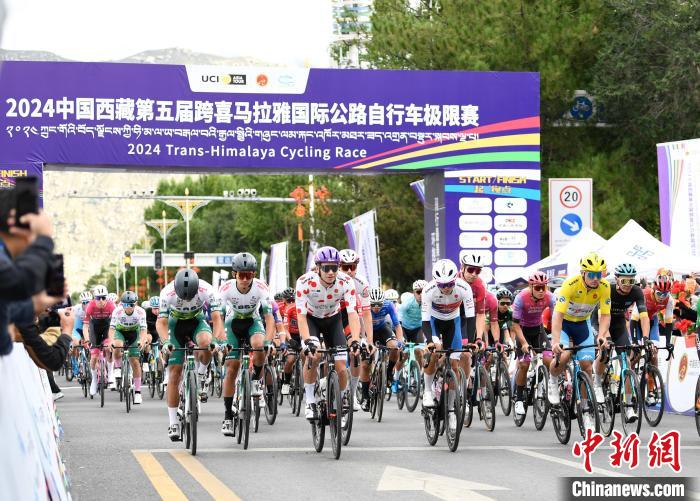 8月24日,2024中國(guó)西藏第五屆跨喜馬拉雅國(guó)際公路自行車極限賽第二賽段在拉薩開賽。據(jù)悉,本賽段總距離約90.34公里,吸引了來(lái)自中國(guó)、西班牙、哈薩克斯坦等22支車隊(duì)。圖為中國(guó)西藏第五屆跨喜馬拉雅國(guó)際公路自行車極限賽第二賽段鳴槍比賽。中新社記者 貢嘎來(lái)松 攝