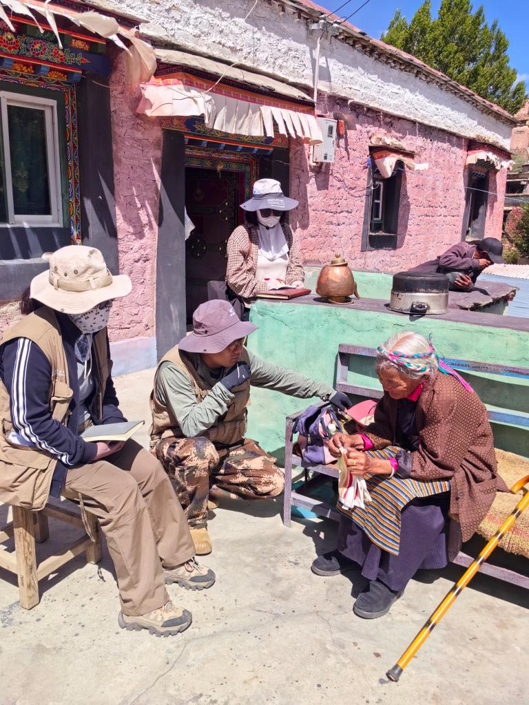 普查隊(duì)員在山南市曲松縣曲松鎮(zhèn)瓊嘎村向當(dāng)?shù)乩先俗稍?xún)?cè)摯鍤v史文化情況。(受訪(fǎng)者供圖)