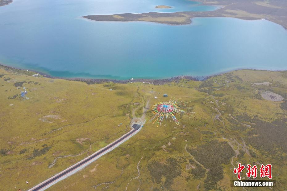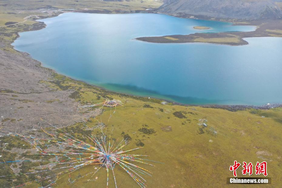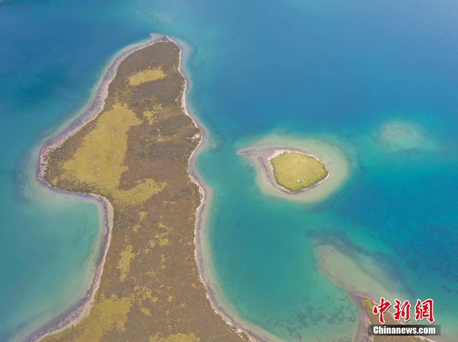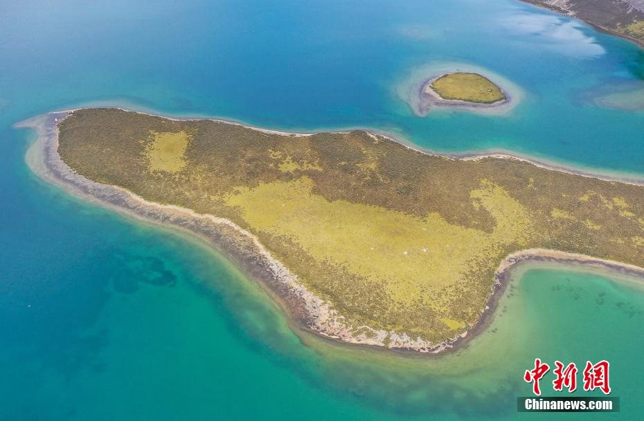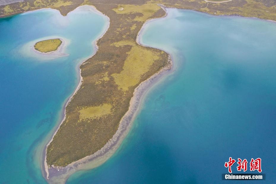 9月6日,思金拉措景區(qū)風(fēng)光秀麗。思金拉措湖位于西藏拉薩市墨竹工卡縣,海拔4500米,湖邊群山高聳、草甸金黃。從空中俯瞰,思金拉措湖心島如同“黃金右腳”踢球。圖為思金拉措湖心島。(無(wú)人機(jī)照片)