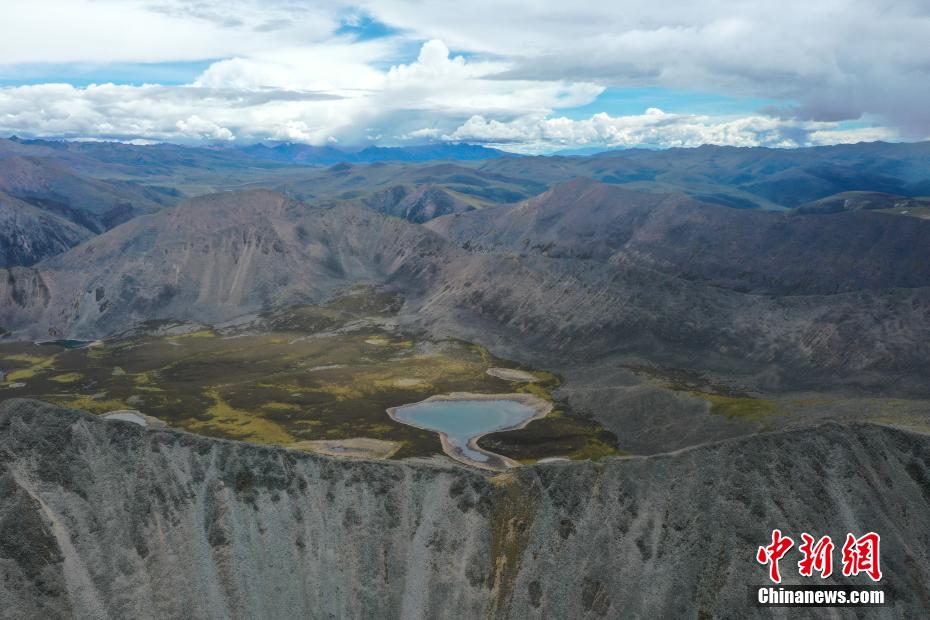 9月6日,思金拉措景區(qū)風(fēng)光秀麗。思金拉措湖位于西藏拉薩市墨竹工卡縣,海拔4500米,湖邊群山高聳、草甸金黃。從空中俯瞰,思金拉措湖心島如同“黃金右腳”踢球。圖為思金拉措一角。(無(wú)人機(jī)照片)