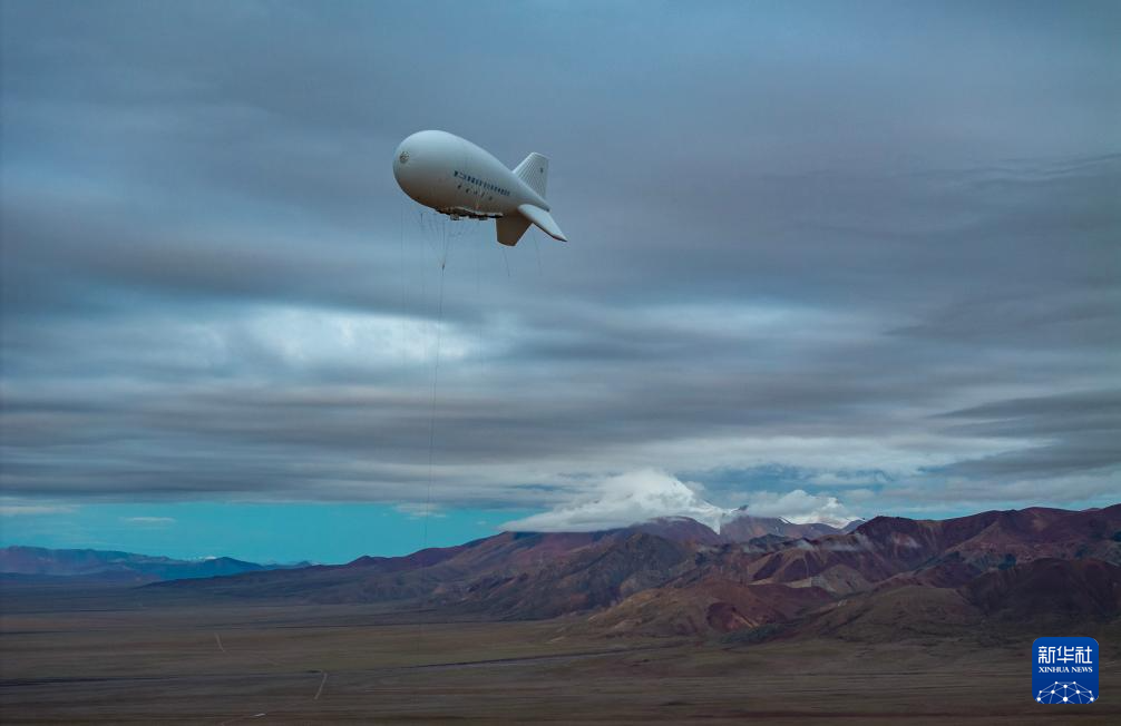 形似“大白鯨”的極目一號(hào)Ⅰ型浮空艇14日在西藏雙湖完成了22天來的第8次科學(xué)觀測。