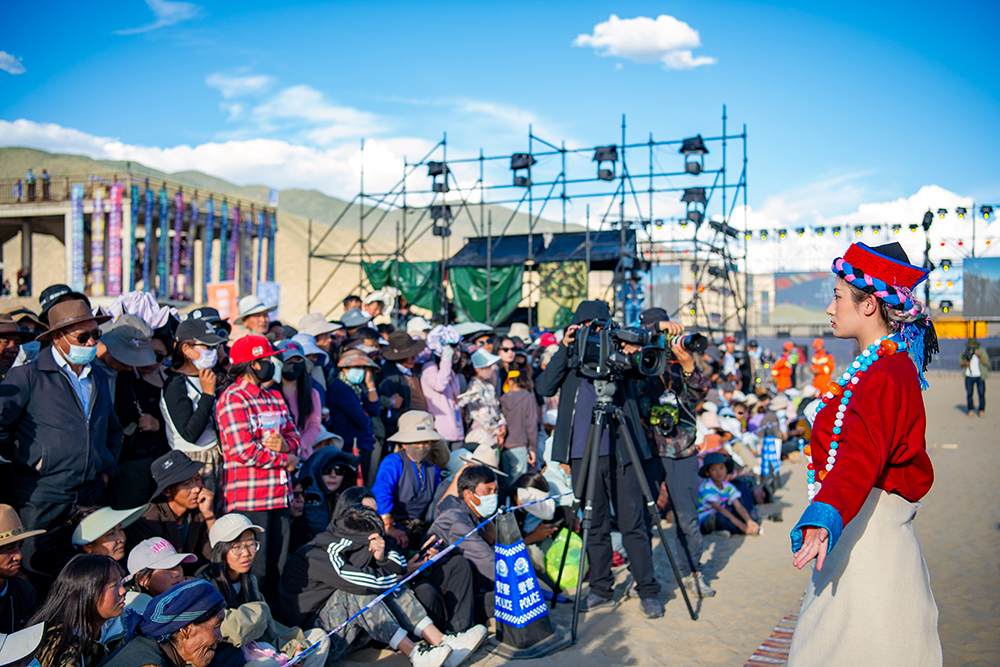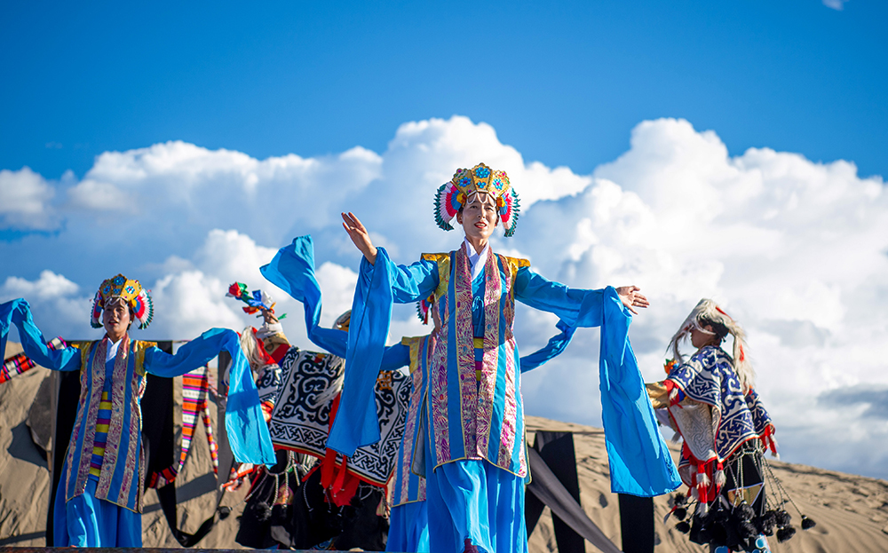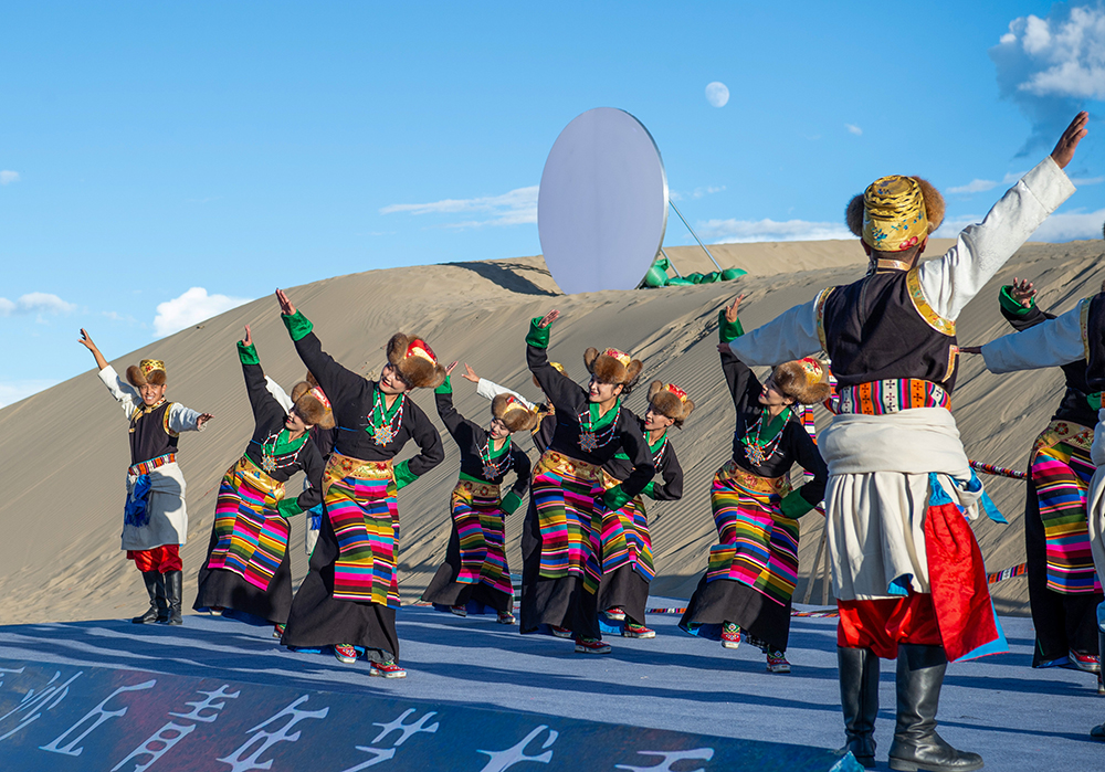 西藏山南首屆“高原沙丘青年藝術季”非遺歌舞展演現(xiàn)場(9月15日攝)。新華網 旦增努布 攝