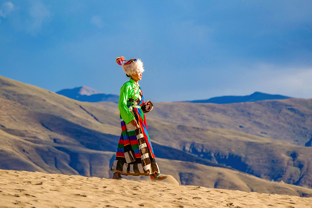 西藏山南首屆“高原沙丘青年藝術季”沙漠服飾秀現(xiàn)場(9月15日攝)。新華網 旦增努布 攝