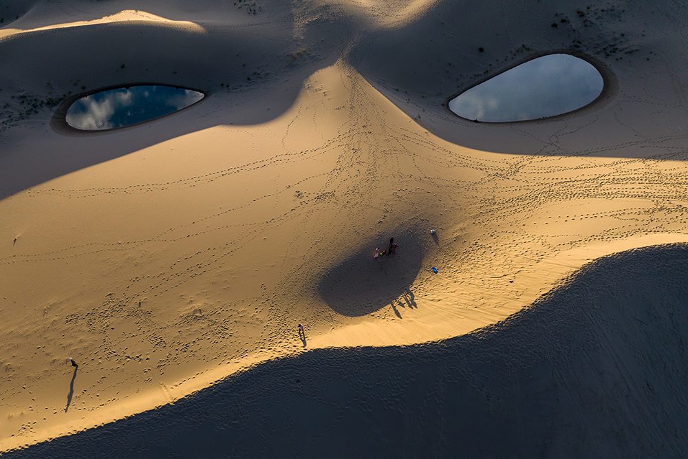游客在西藏山南扎囊國家沙漠公園拍攝(無人機照片,9月15日攝)。新華網 旦增努布 攝