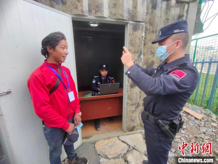 圖為吉隆出入境邊防檢查站民警在貢當(dāng)傳統(tǒng)邊貿(mào)點(diǎn)對(duì)入境邊民進(jìn)行人證對(duì)照?!〖拒?攝