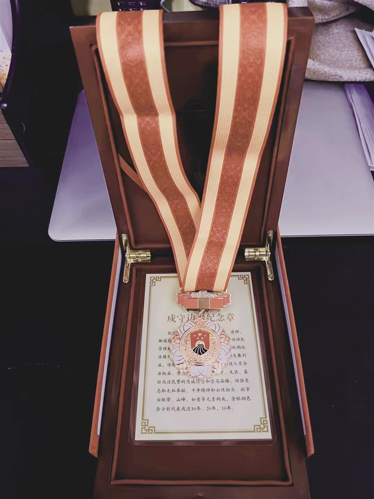 2023年4月17日,拉巴旦增收到了由國家移民管理局頒發(fā)的戍守邊疆銅質(zhì)紀念章,證書上附有說明:金銀銅色條分別代表戍邊30年、20年、10年。目前,拉巴旦增手握銅質(zhì)紀念章,但他的目光已望向更遙遠的未來,正如他置頂朋友圈里那句擲地有聲的標語:一生只做一件事,我為祖國守邊疆。轉(zhuǎn)眼14載春秋,拉巴旦增以滿腔熱血和不懈堅持,將年少的小小夢想繪成祖國邊陲的輝煌篇章,深深詮釋了“因為熱愛而值得”。