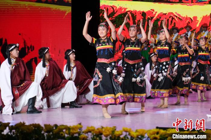 9月23日晚,西藏自治區(qū)首屆殘疾人文藝匯演在拉薩開演,來自西藏各市地的聽障、視障以及肢體殘疾群體紛紛登上舞臺(tái)一展風(fēng)姿,舞蹈、歌曲、手語等節(jié)目輪番上陣。圖為當(dāng)日演出現(xiàn)場,孩子們表演舞蹈。記者 江飛波 攝