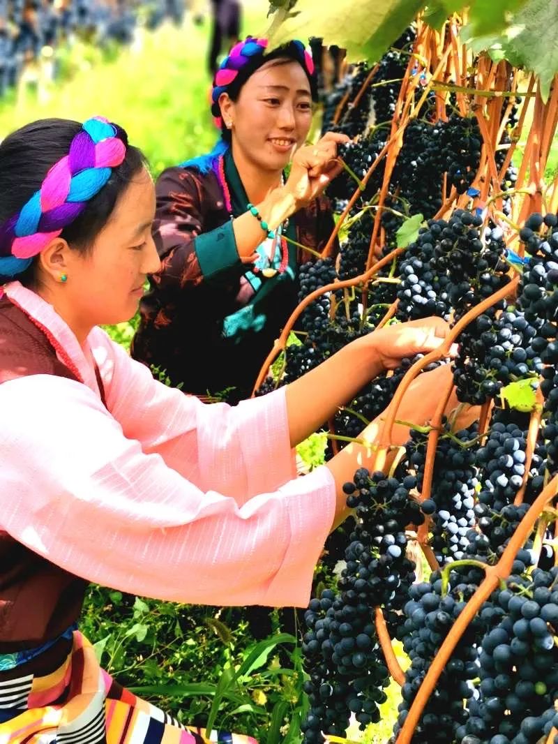 芒康當(dāng)?shù)?,村民們正在摘取葡?nbsp;