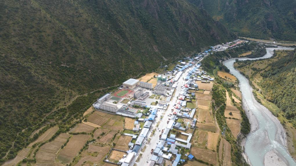 貢喬熱旦家夏季牧場的全貌(無人機照片,9月4日攝)。新華社記者 丁增尼達 攝