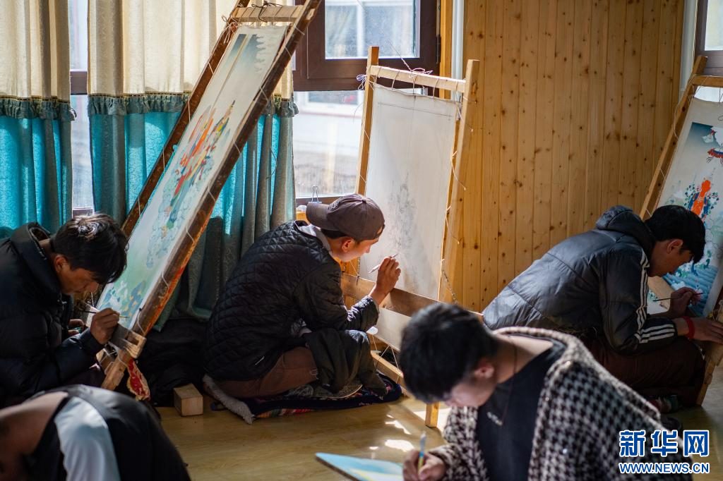 10月17日拍攝的卡若區(qū)嘎瑪鄉(xiāng)比如村的一家唐卡畫院。新華網(wǎng) 旦增努布 攝