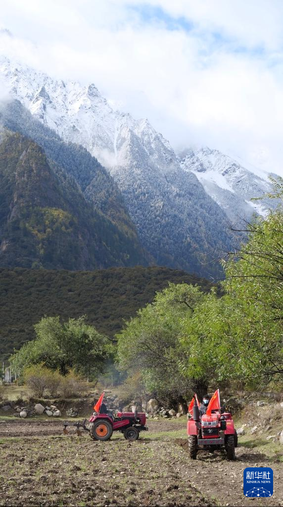 每年10月,是西藏那曲市嘉黎縣尼屋鄉(xiāng)播種冬小麥的時節(jié)。忠玉村村民索朗益西和鄉(xiāng)親們開著拖拉機翻土備耕。