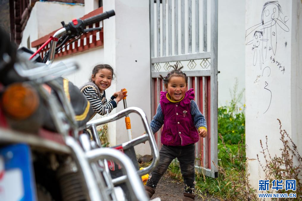 10月19日,在西藏昌都市卡若區(qū)境內(nèi)拍攝的小朋友(無人機(jī)照片)。新華網(wǎng) 旦增努布 攝