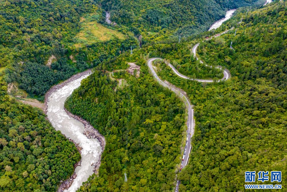 10月11日,在西藏林芝市波密縣境內(nèi)拍攝的川藏公路(無人機(jī)照片)。新華網(wǎng) 旦增努布 攝