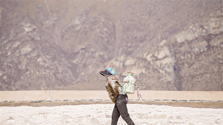 在粉刷現(xiàn)場,記者采訪了幾位參與工作的工人和義工。來自山東的王博告訴記者,他這次來布達(dá)拉宮的感受與前幾次截然不同。趕上粉刷季,他看到群眾自發(fā)前來做義工,一起為布達(dá)拉宮換上新衣,這讓他深受感動和震撼?!拔疑衔绨徇\(yùn)了三桶白灰到頂上,很有成就感,也感受到了大家一起愛護(hù)家園、愛護(hù)古建筑的那種心情。”王博說。
