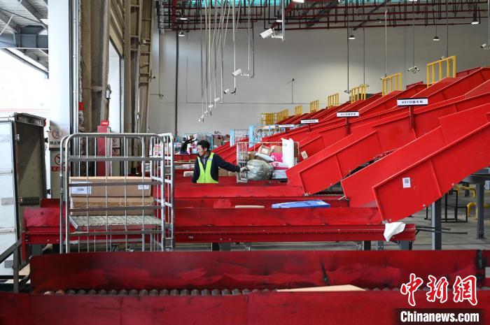 圖為拉薩一家快遞企業(yè)的分揀車間。趙朗 攝