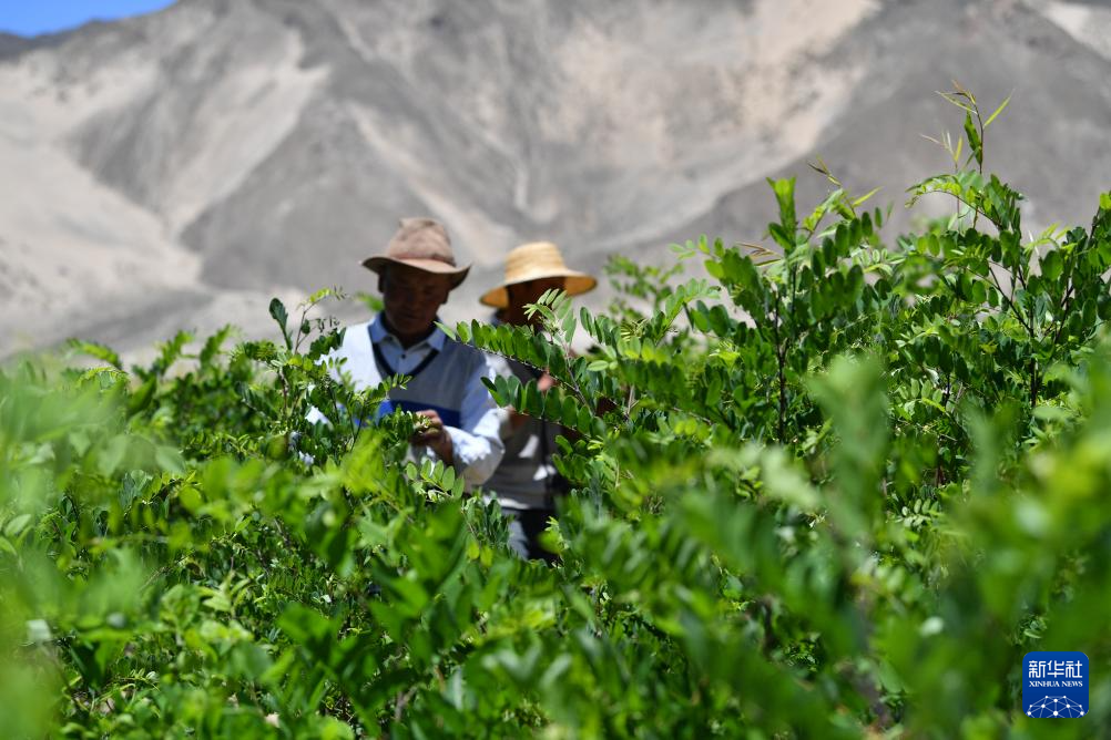 西藏山南市貢嘎縣吉雄鎮(zhèn)劉瓊村村民在查看樹(shù)苗生長(zhǎng)情況(2021年6月2日攝)。新華社記者 晉美多吉 攝