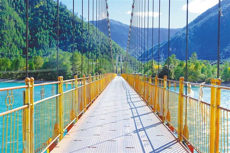 通往百巴松贊帳篷營(yíng)地的百巴村章白吊橋,如今也成了旅游打卡地。記者 王珊 謝筱純 攝
