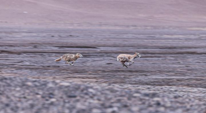 2024年6月14日,在西藏那曲市尼瑪縣境內(nèi)的羌塘國(guó)家級(jí)自然保護(hù)區(qū)“無(wú)人區(qū)”深處,一只野狼在追逐一只懷孕的母藏羚羊(視頻截圖)。新華社發(fā)(達(dá)瓦多吉攝)