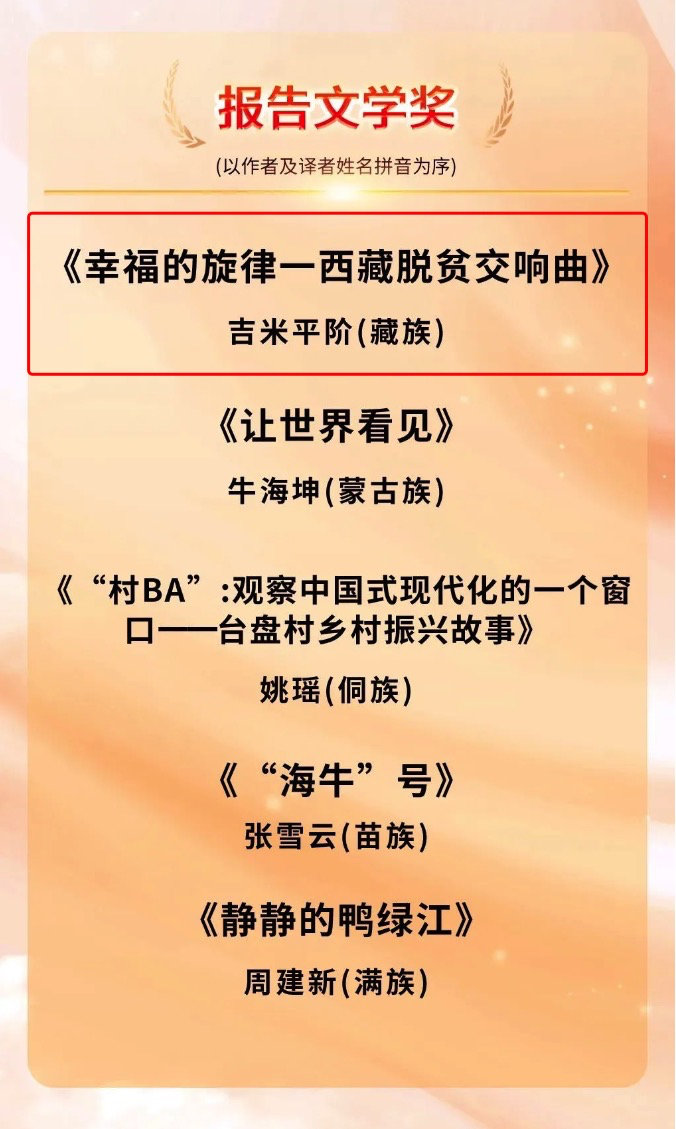 圖為第十三屆駿馬獎(jiǎng)長篇小說獎(jiǎng)和報(bào)告文學(xué)獎(jiǎng)獲獎(jiǎng)名單。(圖片來源于道中華微信公眾號(hào))