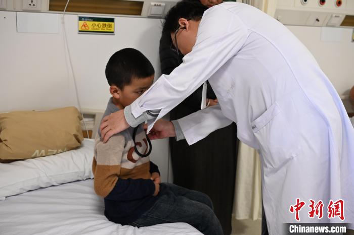 圖為北京協(xié)和醫(yī)院心外科副主任、副主任醫(yī)師張超紀(jì)為患兒尼瑪(化名)初步檢查身體情況。中新社記者 徐雪瑩 攝