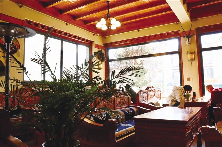 實際上,拉薩城里遍布著許多甜茶館,這些小館沒有華麗的裝飾,沒有高昂的價格,甚至沒有顯眼的門牌。它們隱藏在拉薩的大街小巷中,面積不大、藏式裝修,有些老甜茶館內(nèi)桌椅都被盤“包漿”了,但這并不影響店里藏面的味道和甜茶的濃香。在拉薩,你總能在不經(jīng)意間發(fā)現(xiàn)一家不起眼的甜茶館,里面常常傳來人們的歡聲笑語。這些甜茶館不僅是人們填飽肚子的地方,更是拉薩人放松身心的溫暖港灣,承載這拉薩的文化。