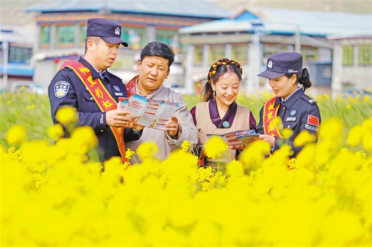 圖為帕里邊境派出所民警在田間地頭開(kāi)展普法宣傳。記者 張宇 通訊員 白瑪倉(cāng)覺(jué) 攝