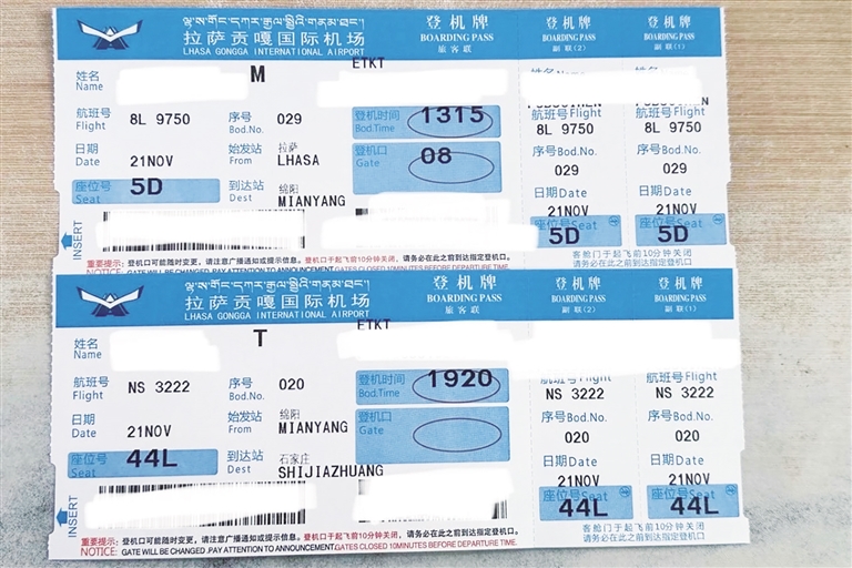 經(jīng)綿陽中轉的跨航司中轉登機牌樣式。