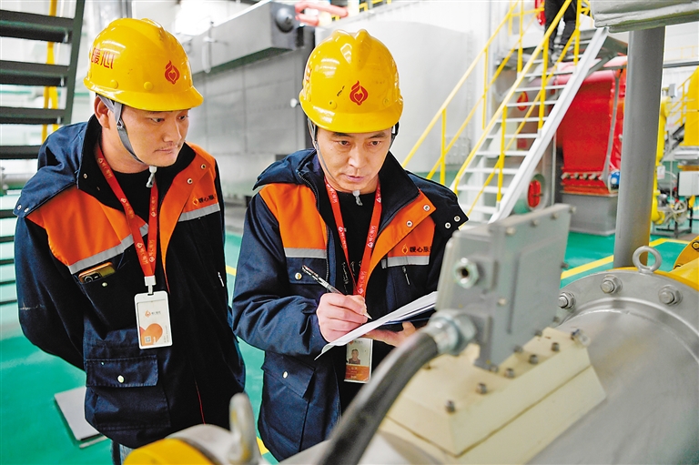拉薩市暖心燃氣熱力有限責任公司工作人員在鍋爐房內(nèi)檢查設(shè)備運行情況。記者 王敏 攝