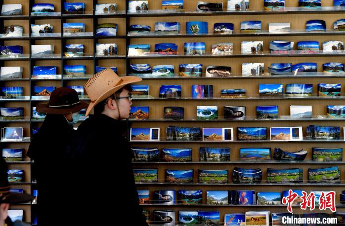 圖為12月3日,游客在天上西藏主題郵局挑選明信片。中新社記者 李林 攝