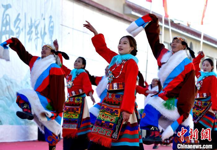 圖為第三屆“鄉(xiāng)村振興 那曲奮進”成果轉(zhuǎn)化暨第十八屆畜產(chǎn)品展銷會開幕式上的文藝演出。李林 攝