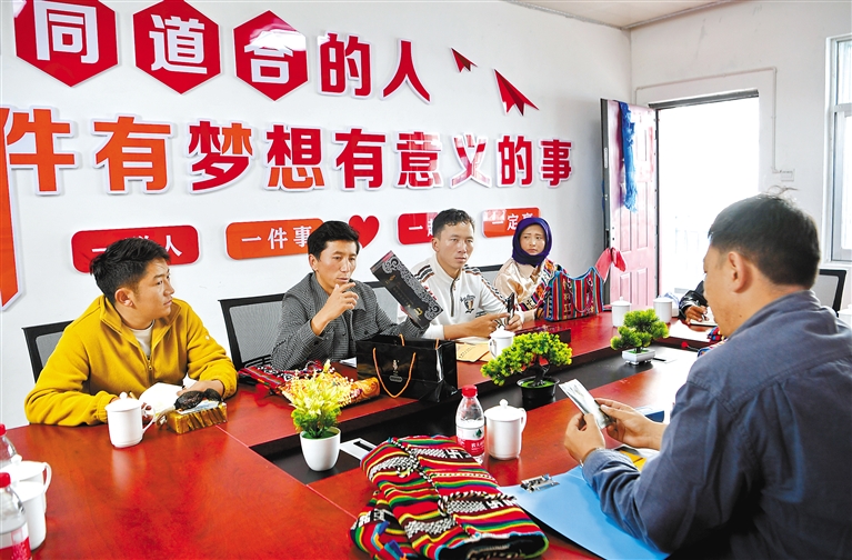 那曲市安多縣的大學(xué)畢業(yè)生倉(cāng)秋多吉聯(lián)合6人創(chuàng)業(yè),于2021年創(chuàng)辦了安多托尕爾倉(cāng)游牧產(chǎn)業(yè)有限責(zé)任公司。公司搭建了民族手工藝產(chǎn)品、土特產(chǎn)銷(xiāo)售平臺(tái),在當(dāng)?shù)卣畠?yōu)化營(yíng)商環(huán)境政策的支持下,創(chuàng)業(yè)團(tuán)隊(duì)逐步擴(kuò)大,帶動(dòng)了當(dāng)?shù)剞r(nóng)牧民產(chǎn)業(yè)興旺?!D為倉(cāng)秋多吉(左二)和團(tuán)隊(duì)核心成員商討產(chǎn)品銷(xiāo)售提升策略。(資料圖片) 新華社記者 張汝鋒 攝