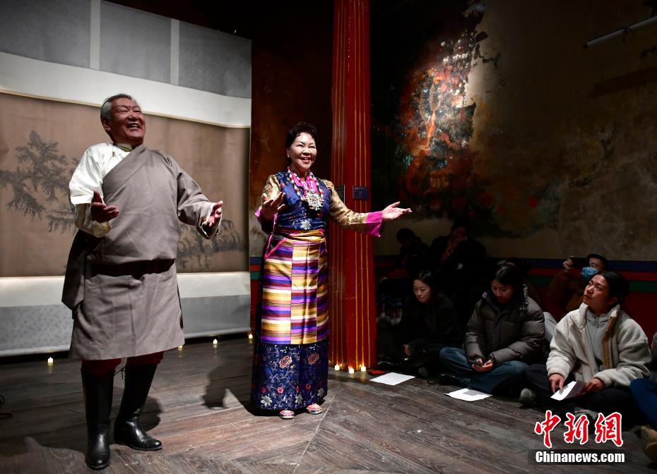 12月23日晚,西藏拉薩吉本崗藝術(shù)中心舉行吉光之夜活動。朗瑪堆諧、扎木念彈唱、熱巴舞等非遺展演,吸引眾多民眾共同領(lǐng)略西藏非物質(zhì)文化遺產(chǎn)的無窮魅力。圖為扎木念彈唱《阿里札達民歌須彌山》。中新社記者 李林 攝