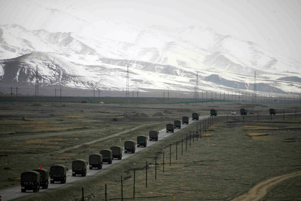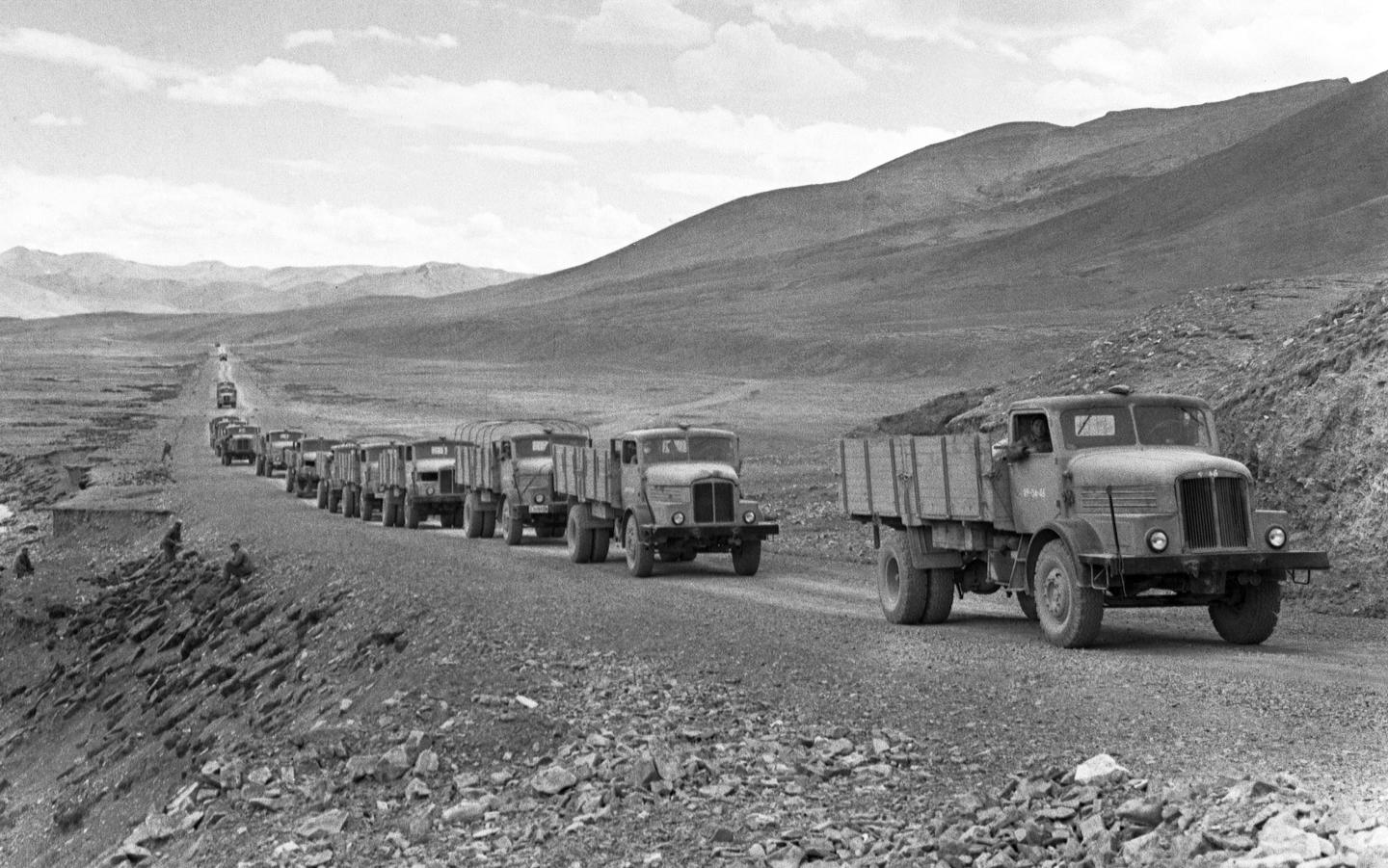 1958年,汽車隊行進在青藏高原上。