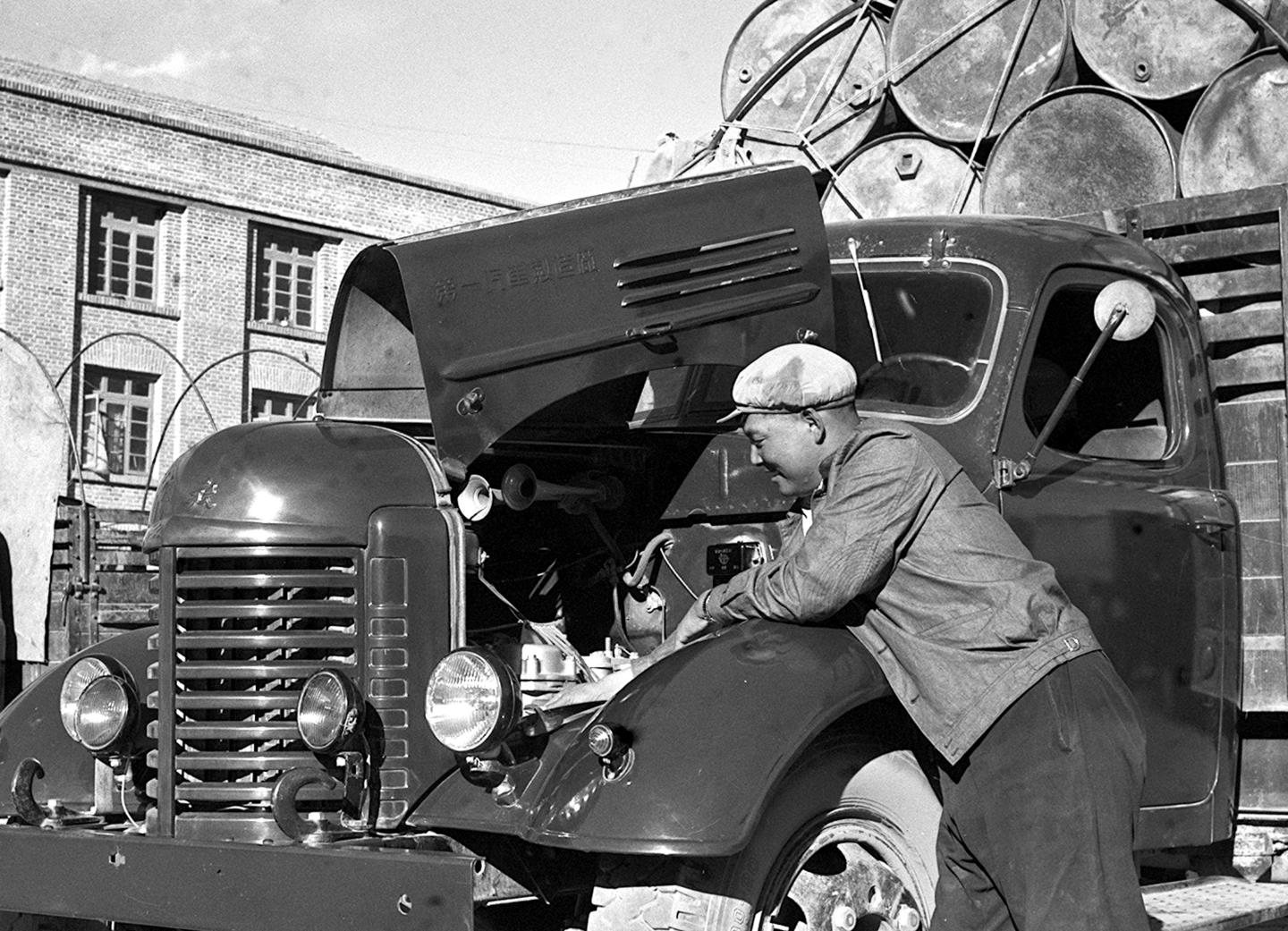1964年,曾經(jīng)是川藏公路筑路工人的汽車駕駛員呷瑪卻桑在出車前對汽車機件進行檢查?!?/p>