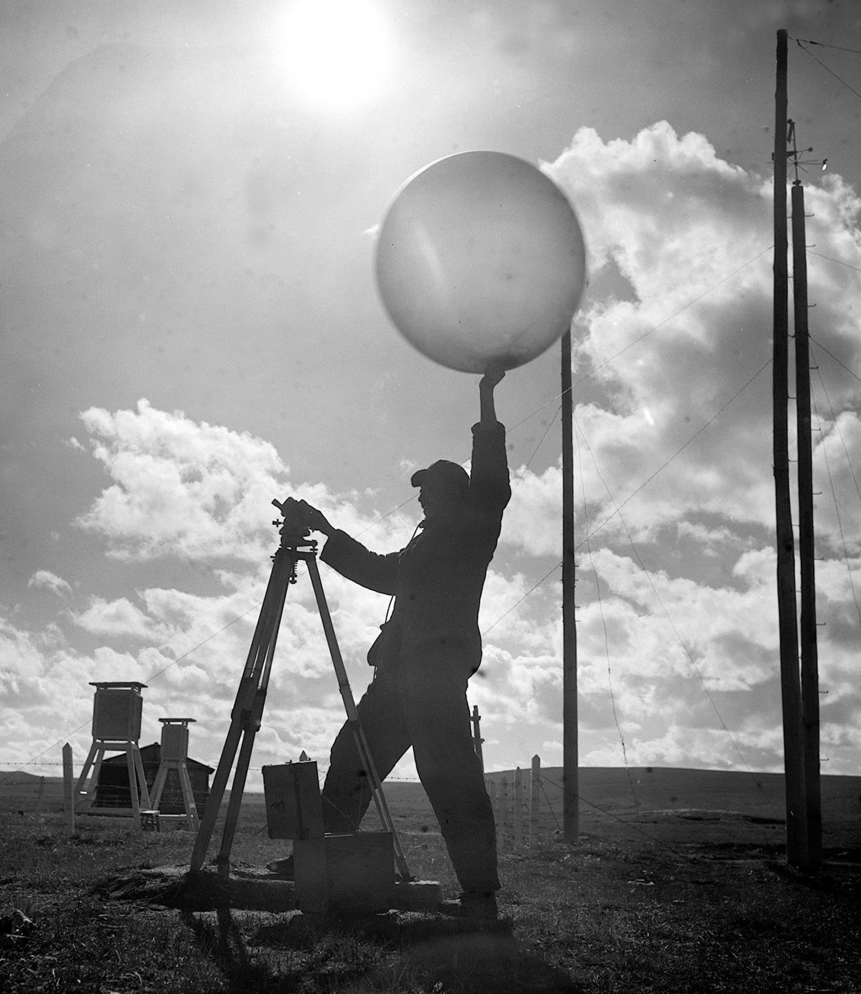 1964年,五道梁氣象服務(wù)站的工作人員放測風(fēng)氣球。在昆侖山里工作的氣象工作者,長期堅守工作崗位,為青藏公路安全運輸提供了寶貴的氣象資料。
