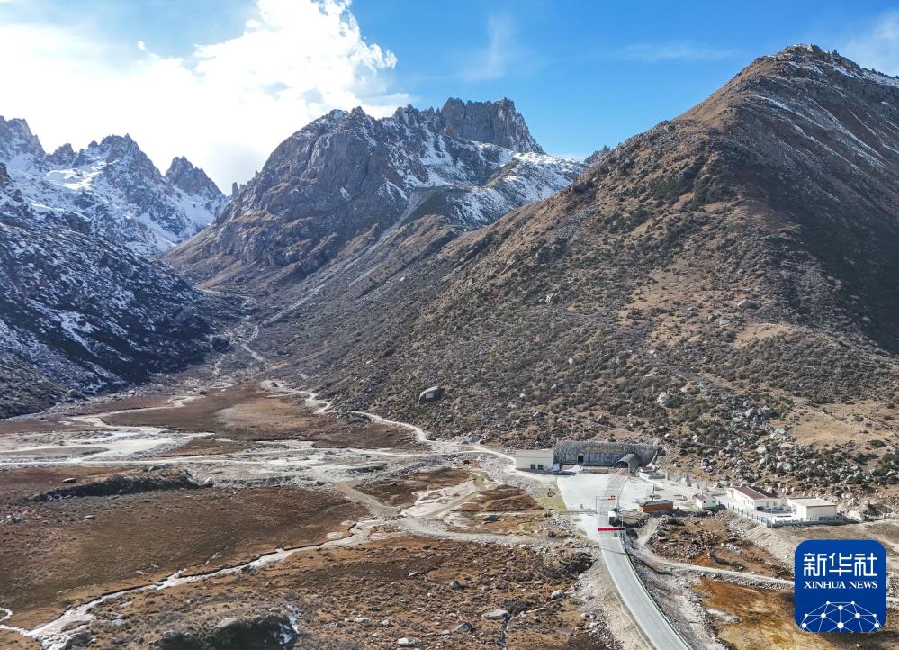 這是2024年11月1日拍攝的317國道雀兒山隧道口(無人機(jī)照片)。新華社記者 王曦 攝
