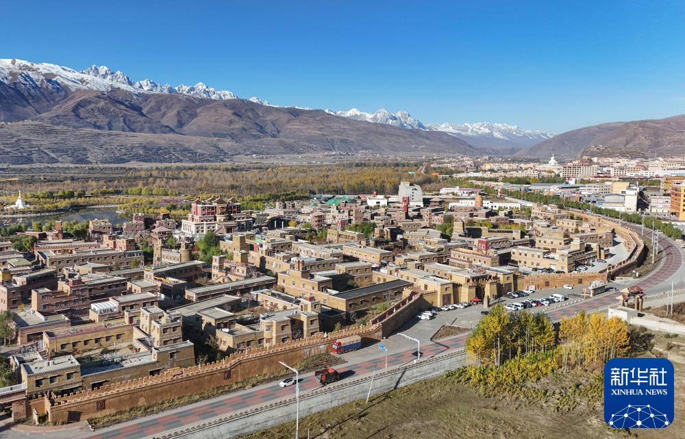 這是2024年10月29日在四川省甘孜藏族自治州拍攝的國道317公路,路邊是甘孜縣格薩爾王城景區(qū)(無人機(jī)照片)。新華社記者 王曦 攝