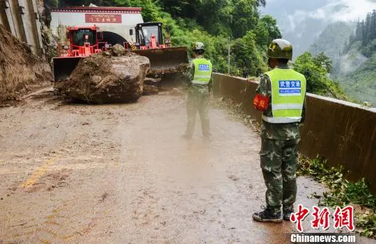 圖為武警官兵處理路基垮塌險情現(xiàn)場。受訪單位提供