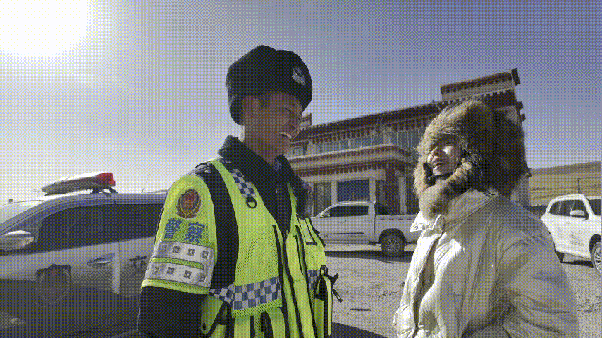 如此“好天氣”,記者已凍得麻木,稍微小跑已是氣喘吁吁。而安多交警們早已習(xí)慣。