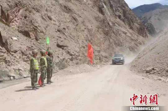 圖為護(hù)路期間,道班工人引導(dǎo)往來車輛。中新社記者 王磊 攝