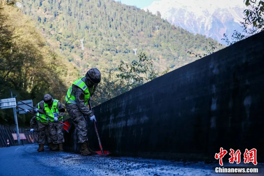 圖為武警官兵日常公路養(yǎng)護(hù)。中新社記者 薛蒂 攝