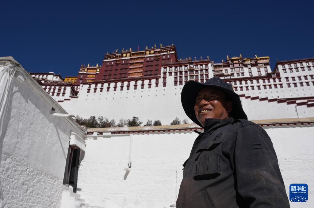 布達(dá)拉宮管理處維修科工作人員在粉刷墻體(12月4日攝)。新華社記者 晉美多吉 攝