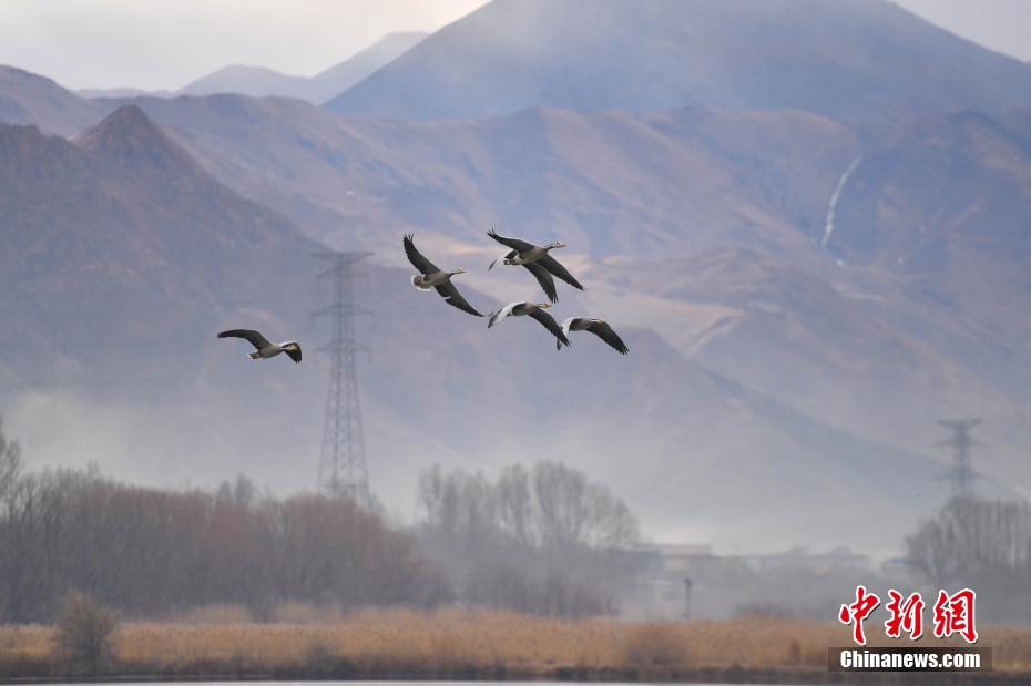12月29日,冬日早晨,拉薩美如畫。拉薩河被晨光染成金色,河水靜靜流淌。西藏自治區(qū)拉薩市的拉魯濕地國家級自然保護區(qū)內(nèi),候鳥歡快,忙著覓食、嬉戲。遠處,布達拉宮與拉魯濕地相互映襯,構成了一幅絕美畫卷。圖為12月29日,斑頭雁、赤麻鴨等候鳥,在拉魯濕地覓食、嬉戲。貢確 攝