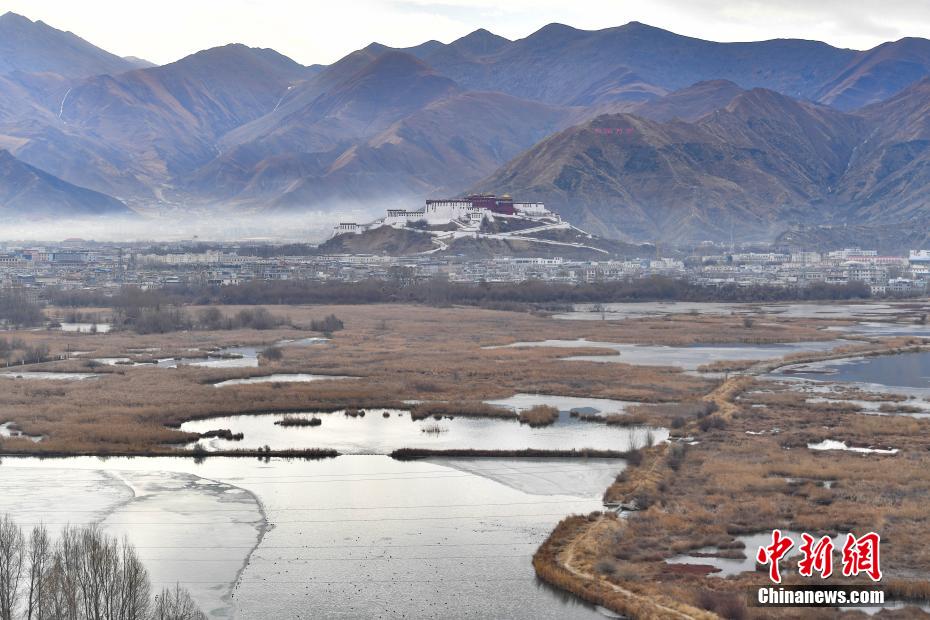 12月29日,冬日早晨,拉薩美如畫。拉薩河被晨光染成金色,河水靜靜流淌。西藏自治區(qū)拉薩市的拉魯濕地國家級自然保護區(qū)內(nèi),候鳥歡快,忙著覓食、嬉戲。遠處,布達拉宮與拉魯濕地相互映襯,構成了一幅絕美畫卷。圖為12月29日,晨霧中的布達拉宮。貢確 攝