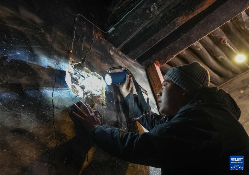 12月4日,布達拉宮監(jiān)測中心的工作人員旦增旺堆巡查布達拉宮地壟傳感器設(shè)備。新華社記者 晉美多吉 攝