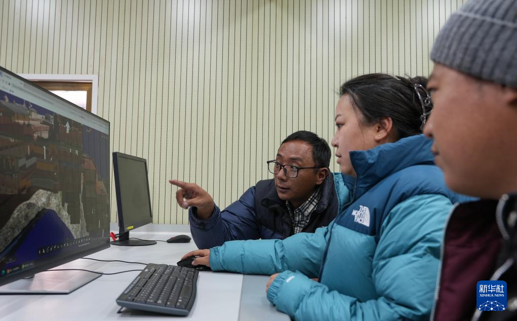12月4日,布達拉宮監(jiān)測中心的工作人員在查看布達拉宮三維圖像。新華社記者 晉美多吉 攝