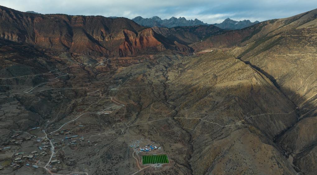 馬利鎮(zhèn)“云中球場(chǎng)”坐落于紅褐色的山谷中(1月2日攝,無人機(jī)照片)。新華社記者 丁增尼達(dá) 攝
