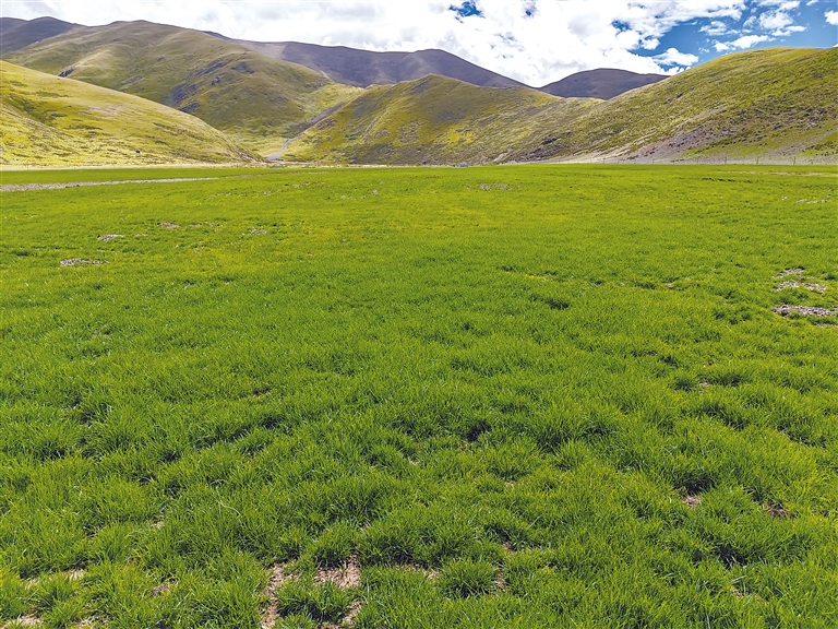 拉薩市當(dāng)雄縣寧中鄉(xiāng)退化草地修復(fù)區(qū)牧草長(zhǎng)勢(shì)良好。