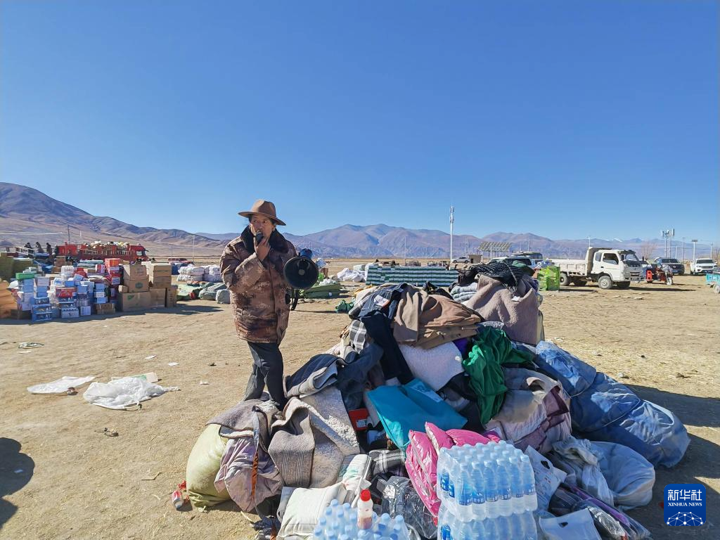 9日上午11時許,在西藏日喀則市拉孜縣拉孜鎮(zhèn)措布村村委會門口,52歲的村黨支部書記達娃正在調(diào)度抗震物資。