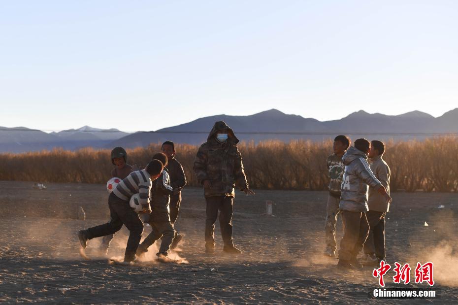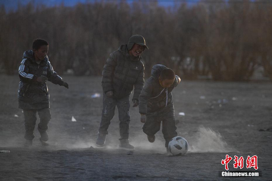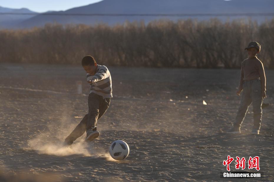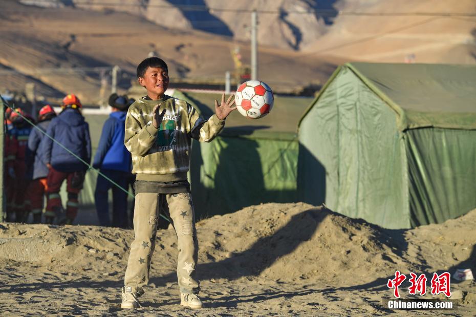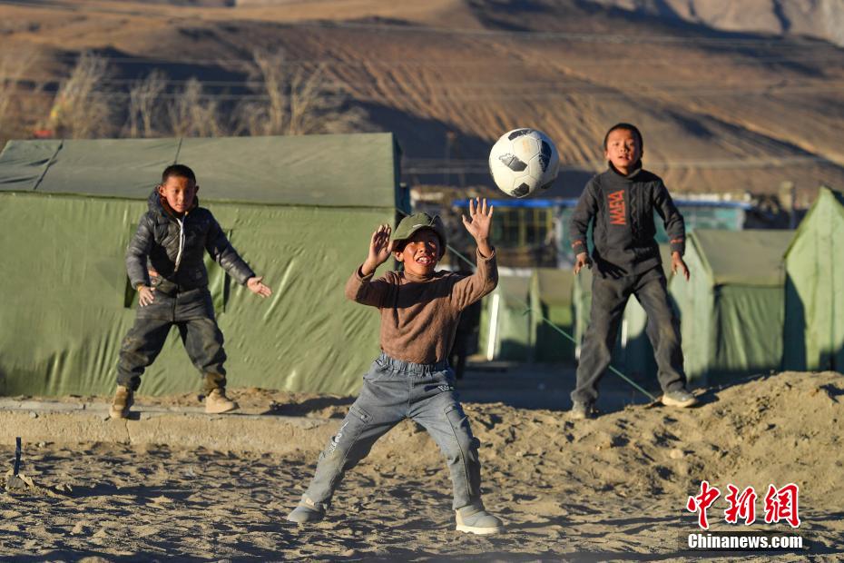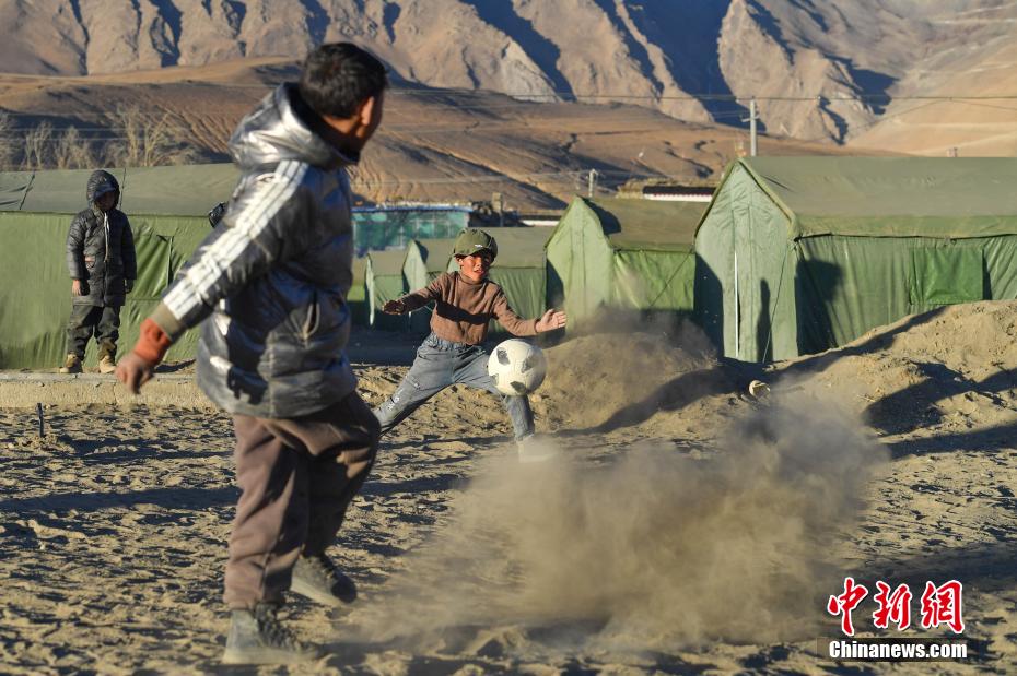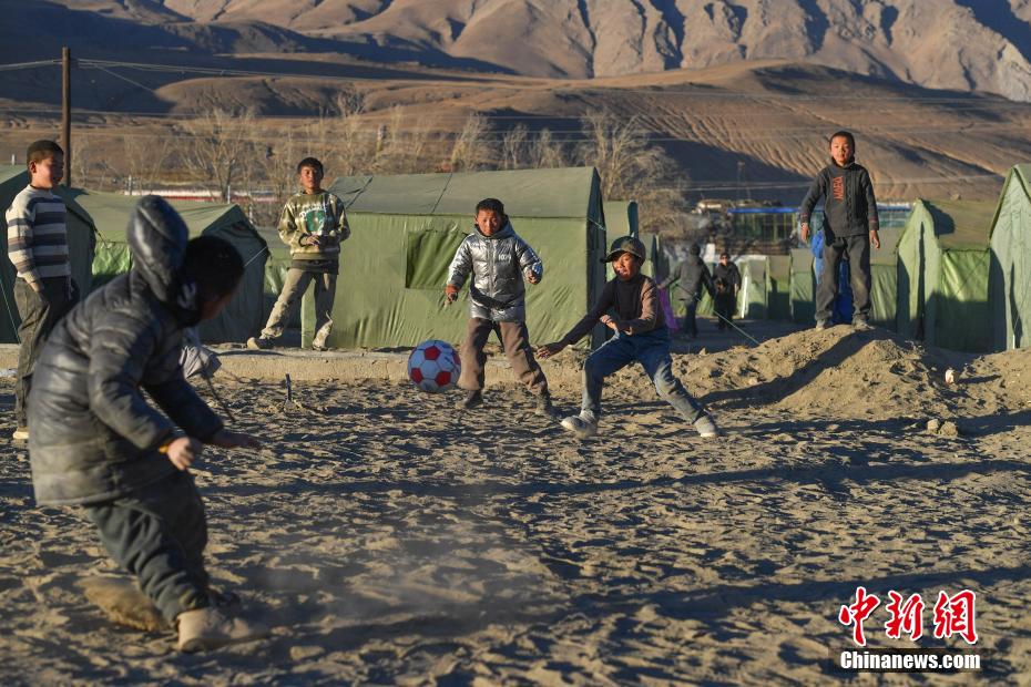 1月10日,在西藏日喀則市定日縣長(zhǎng)所鄉(xiāng)森嘎村安置點(diǎn),夕陽(yáng)下,孩子們分組開展點(diǎn)球大戰(zhàn)。地震雖給村莊帶來(lái)傷痛,但安置點(diǎn)物資保障充足,孩子們?cè)谄D苦環(huán)境中仍保持樂(lè)觀,用簡(jiǎn)單的游戲傳遞著對(duì)生活的熱愛(ài)和希望。貢確 攝